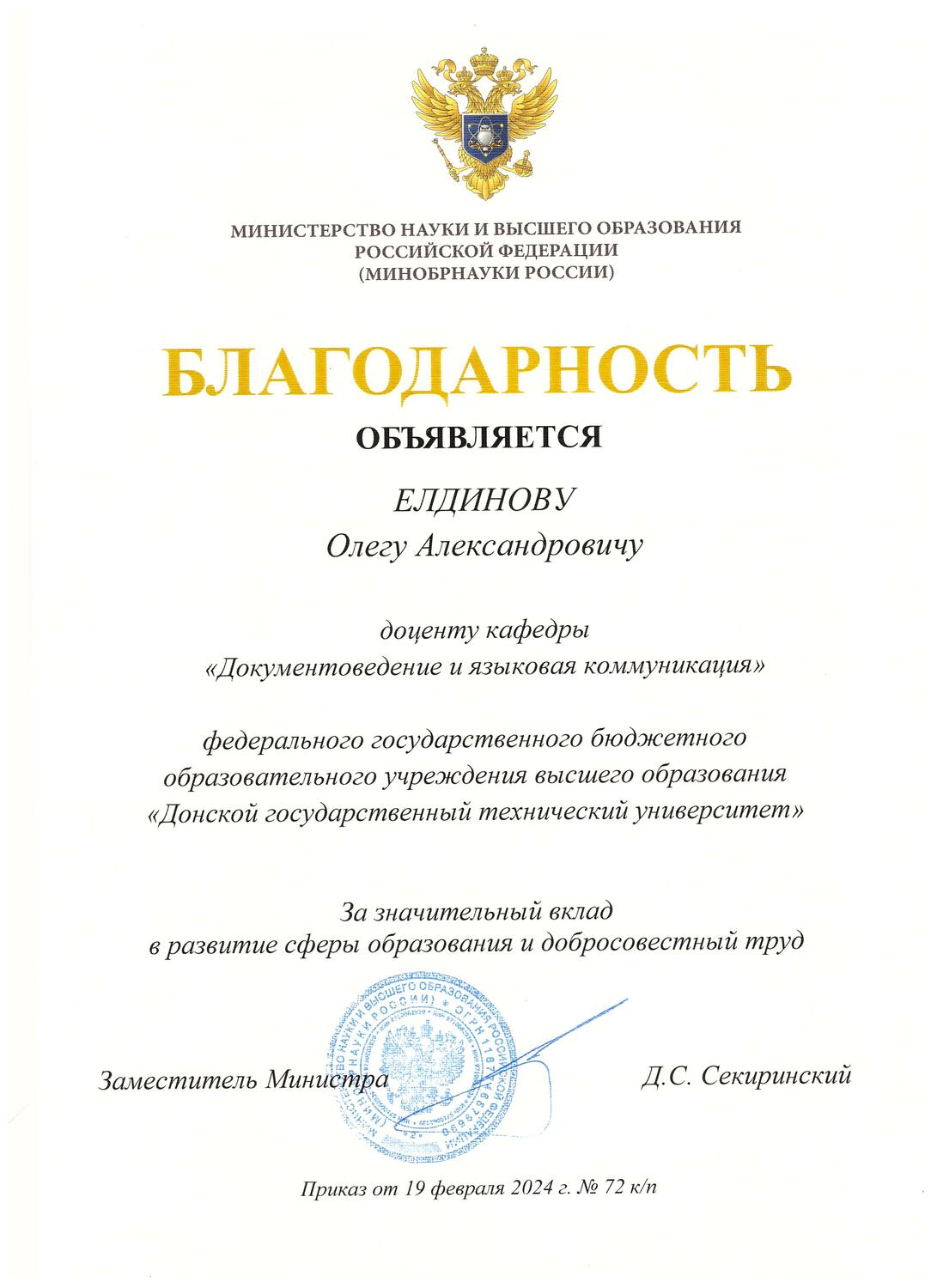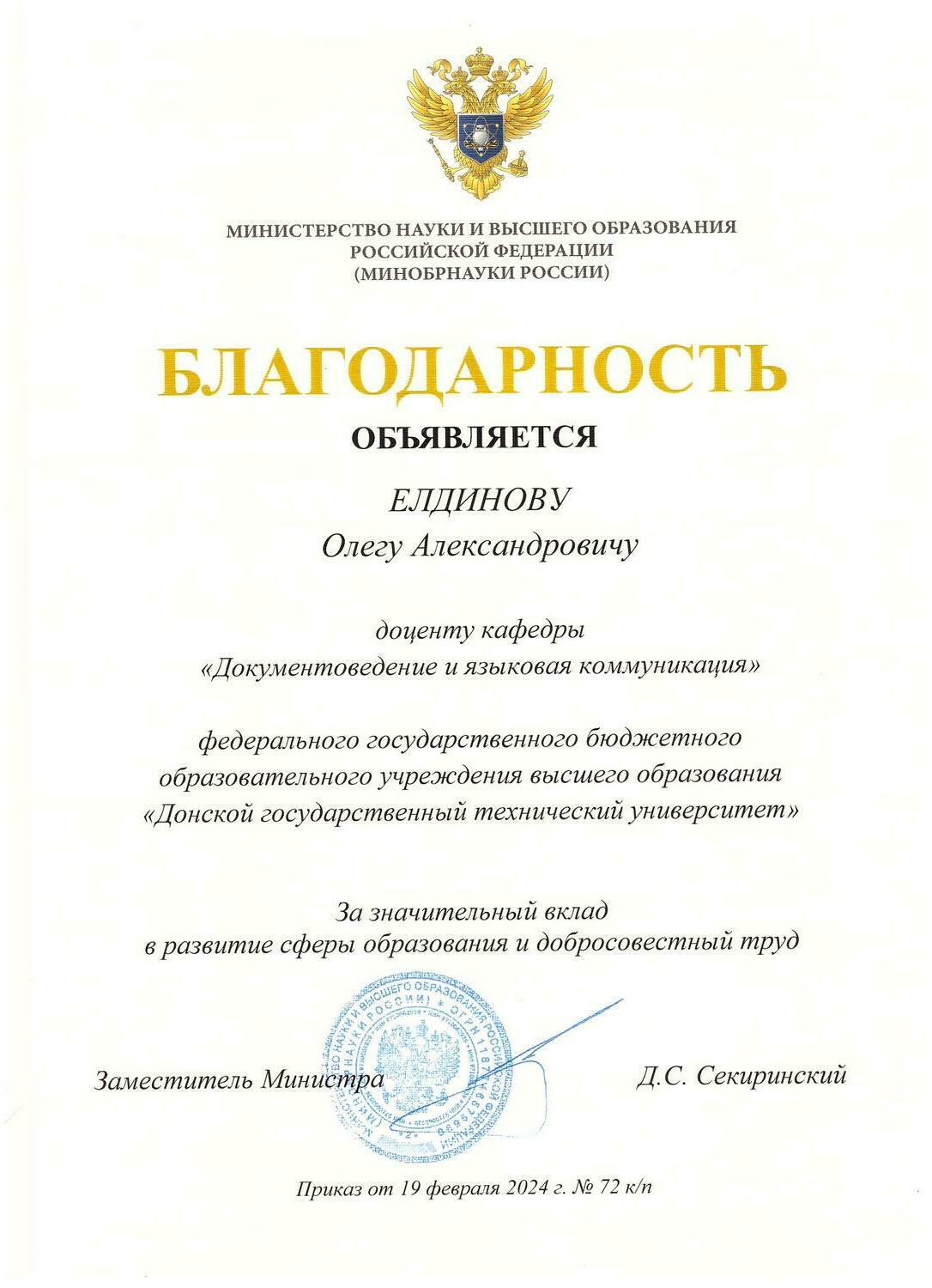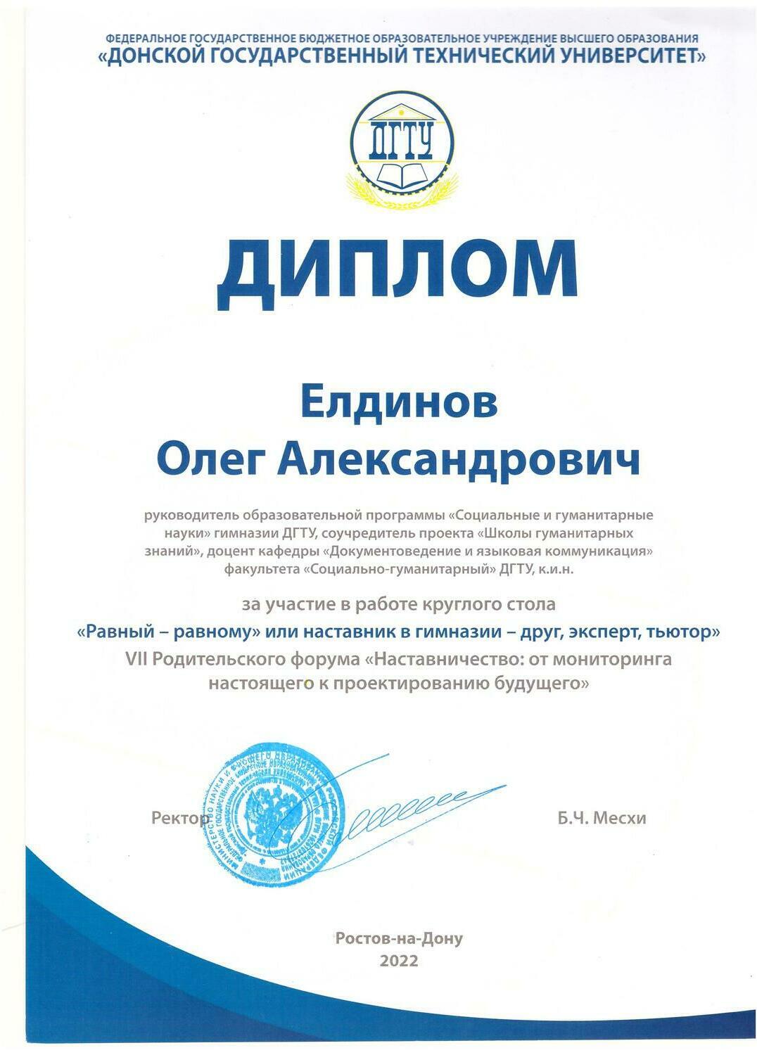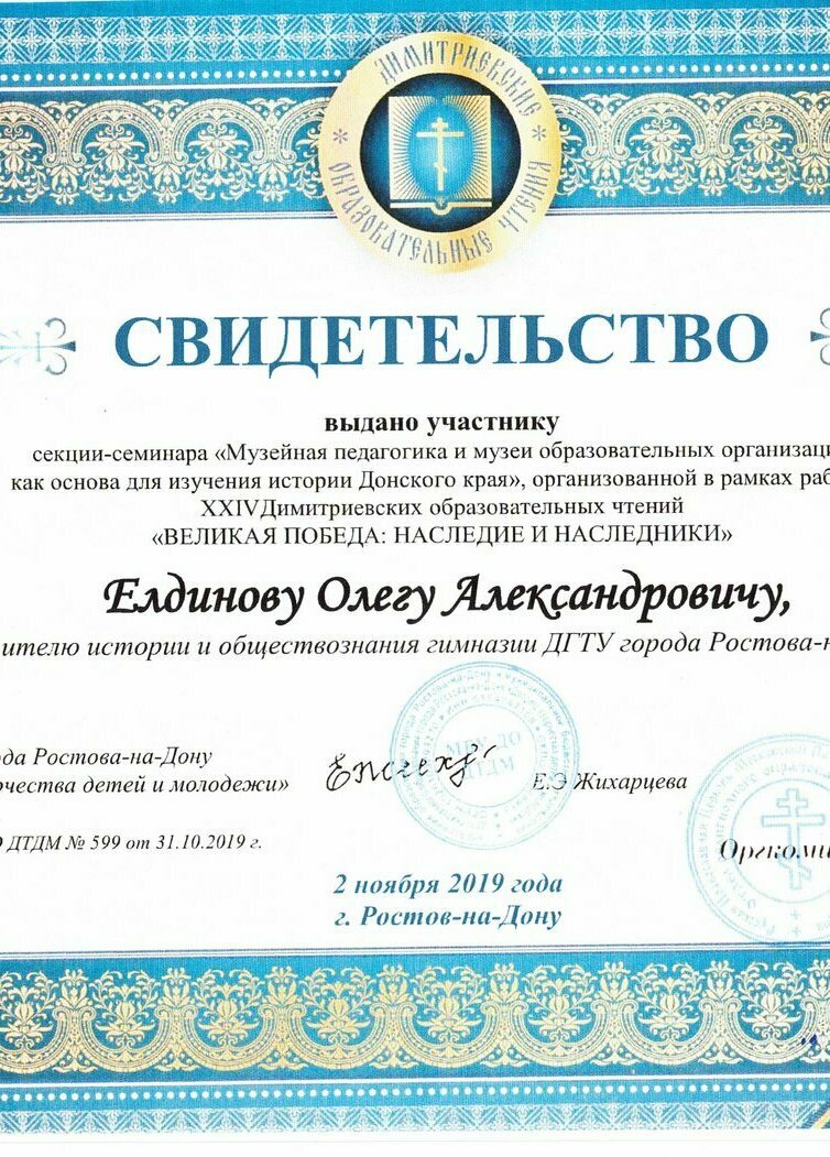 Кандидат исторических наук, приказ Министерства науки и высшего образования РФ № 1022/нк -7 от 23 октября 2019 г. Тема диссертации: «Власть и городские сообщества Ростовской области в 1985-2003 гг.: исторический опыт эволюционного взаимодействия»