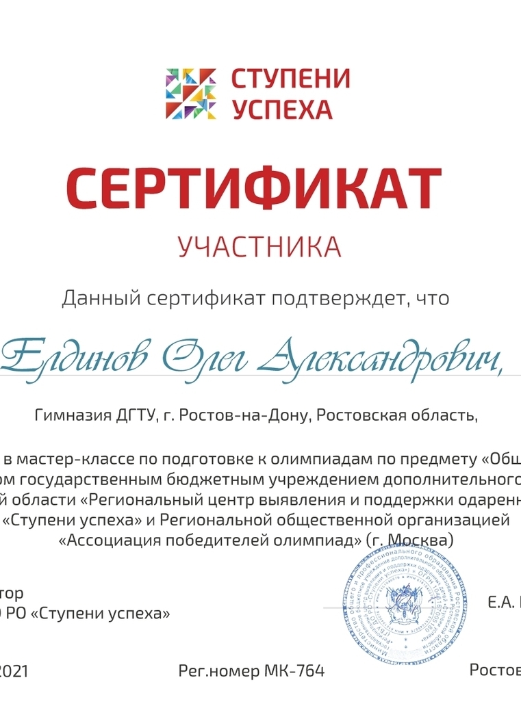 2021 г. - ООО "Фоксфорд", профессиональная переподготовка "Менеджмент в образовании: стратегическое управление развитием образовательных организаций" , диплом № 00073, 21 июня 2021 г.