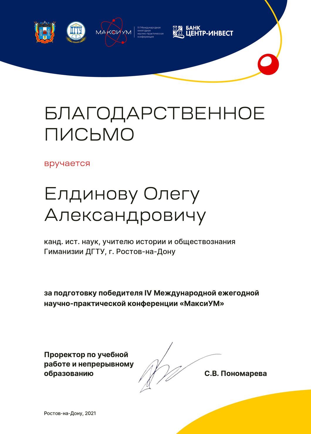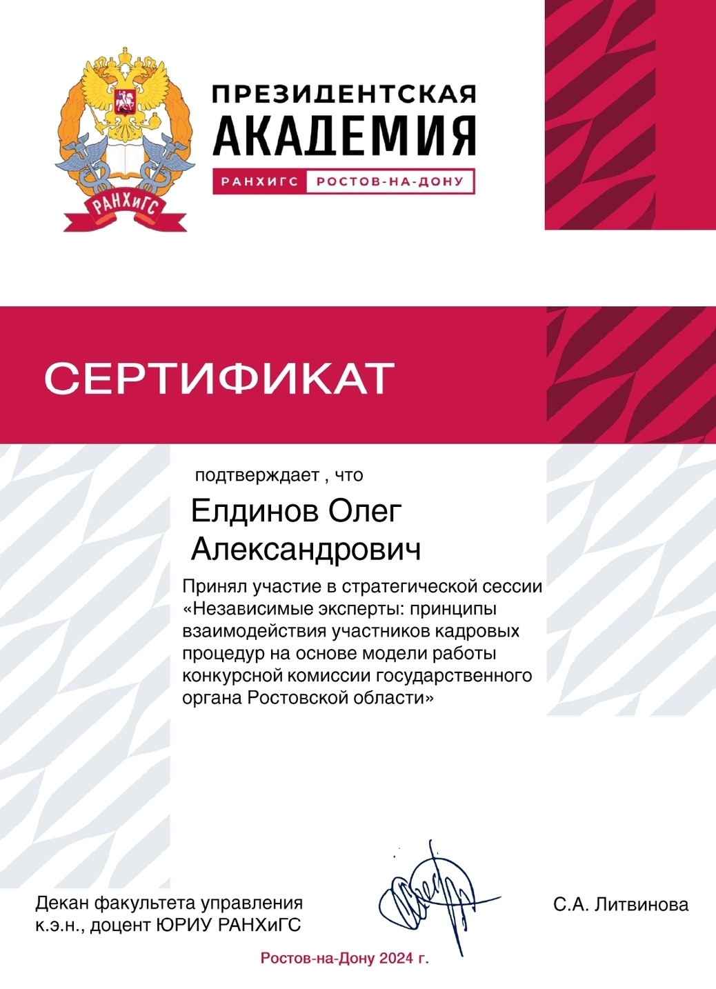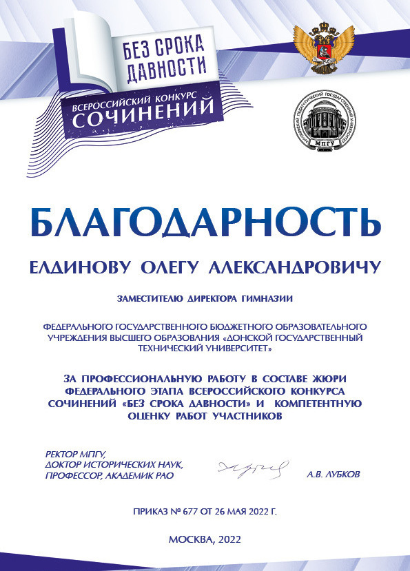Кандидат исторических наук, приказ Министерства науки и высшего образования РФ № 1022/нк -7 от 23 октября 2019 г. Тема диссертации: «Власть и городские сообщества Ростовской области в 1985-2003 гг.: исторический опыт эволюционного взаимодействия»