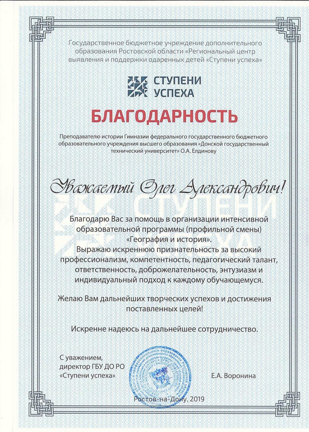 На данный момент педагогическая деятельность органично связана с инновационной политикой ДГТУ. Значительное внимание уделяю индивидуальному интеллектуальному развитию студентов и обучающихся. Социальная активность отмечена благодарственным письмом за участие в волонтерской работе, осуществление наставнической деятельности и товарищескую помощь (Общественная палата РФ, март 2017 г.). Работаю преподавателем истории в региональном центре ГБУ РО «Ступени успеха».